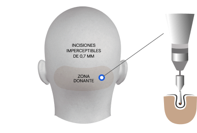 No, no deja cicatriz lineal. La cirugía se realiza con la técnica FUE, es decir, pelo por pelo, y las incisiones son microscópicas –del tamaño de cada folículo-, por lo cual, una vez cicatrizado el tejido, no queda rastro alguno de la cirugía.